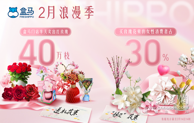 荊楚網(wǎng)(湖北日?qǐng)?bào)網(wǎng))訊(通訊員 何軒)情人節(jié)與元宵節(jié)的“甜蜜相遇”,鮮花市場(chǎng)本周迎來(lái)了年后消費(fèi)高峰。盒馬數(shù)據(jù)顯示,2月浪漫季,鮮花銷售同比去年增長(zhǎng)了25%,熱門的玫瑰花依然唱主角;但今年第一波上市的春花搶了不少“風(fēng)頭”,購(gòu)買勢(shì)能不輸玫瑰花。