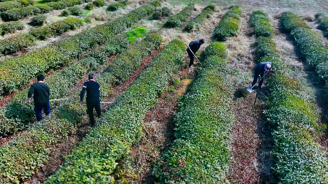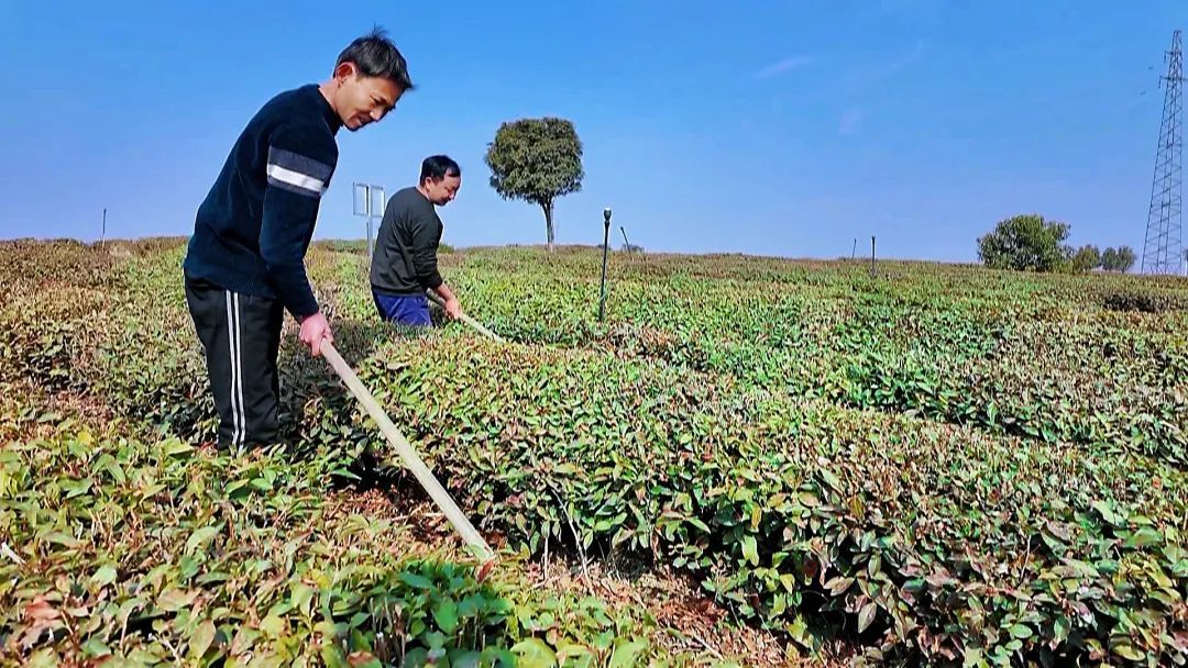 “開春以來,雨水偏少,對茶葉采摘有一定的影響。今天我們來到茶園,指導(dǎo)農(nóng)戶淺根松土、早施催芽肥、開溝防漬,幫助他們做好茶園管理?!卑咨虫?zhèn)農(nóng)技服務(wù)中心負(fù)責(zé)人張紅兵說。