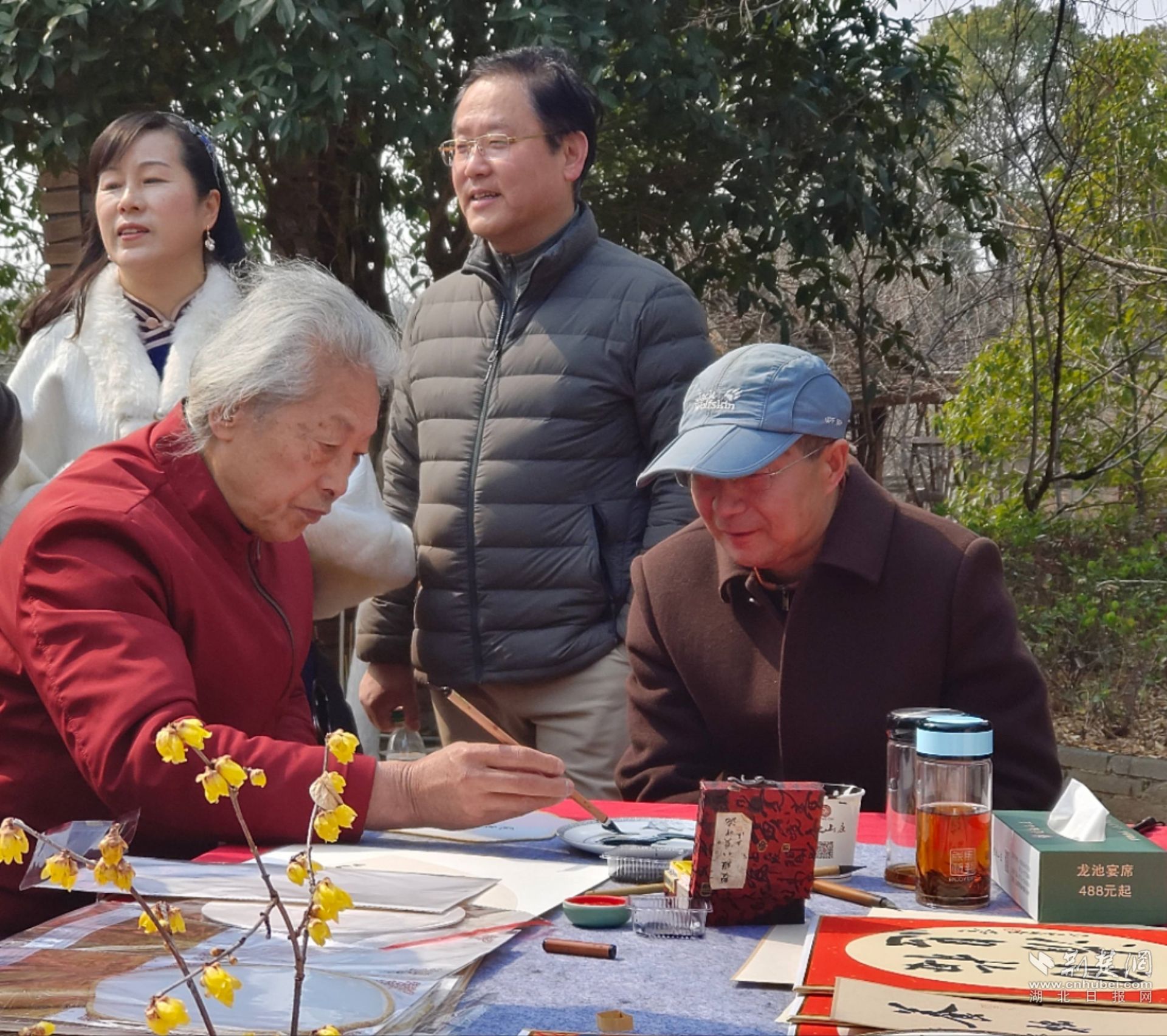 在賞梅之余,游客們還能欣賞到形式多樣的現(xiàn)場表演,增添無限樂趣。更值得一提的是,書畫協(xié)會的書法家們現(xiàn)場即興揮毫潑墨,墨香與梅香相互交融,一幅幅佳作瞬間被游客們爭相求取。