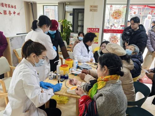 活動(dòng)現(xiàn)場(chǎng),醫(yī)護(hù)人員為居民們提供免費(fèi)測(cè)量血壓、血糖等醫(yī)療服務(wù)。設(shè)有內(nèi)分泌科、神經(jīng)內(nèi)科、心內(nèi)科科室坐診,治療內(nèi)容包含糖尿病、腦血栓、腦出血、冠心病的預(yù)防,以及患病后的飲食、情緒管理等方面。活動(dòng)現(xiàn)場(chǎng)吸引了不少居民駐足問(wèn)診。在志愿者的指引下,居民們有序地登記排隊(duì),進(jìn)行健康咨詢。