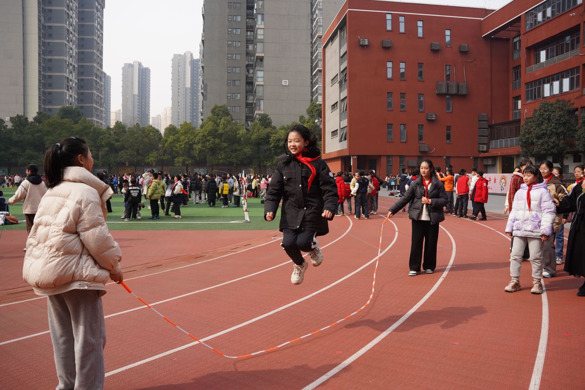 據(jù)了解,新學(xué)期東湖實(shí)驗(yàn)學(xué)校在原有體育課和課間的基礎(chǔ)上,將每天一節(jié)正課時間調(diào)整為大課間活動時間,確保各年級每天至少一節(jié)室外活動課。