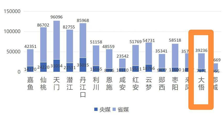 荊楚網(wǎng)(湖北日報網(wǎng))、楚天輿情數(shù)據(jù)研究院根據(jù)各縣區(qū)全年基礎(chǔ)網(wǎng)絡(luò)知名度、網(wǎng)絡(luò)傳播指數(shù)、社會生活網(wǎng)絡(luò)指數(shù)三大一級指標(biāo),十五項二級指標(biāo),二十三項三級指標(biāo),對縣區(qū)全年綜合形象進行排名,數(shù)據(jù)來源于荊楚網(wǎng)及第三方大數(shù)據(jù)傳播指數(shù)系統(tǒng)自動抓取。去年,大悟在中省市縣主流媒體全年信息量達39236條。其中,湖北日報《冰雪無情,大悟有愛!大悟志愿者用愛心溫暖滯留高速司機》、湖北日報微信公眾號《熱干面,出動了》等4篇新聞在發(fā)布當(dāng)天閱讀量突破10萬+,感動眾多網(wǎng)友,老區(qū)人民的善舉成為城市精神的生動寫照,在冬日中彰顯大悟溫情。