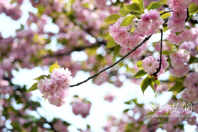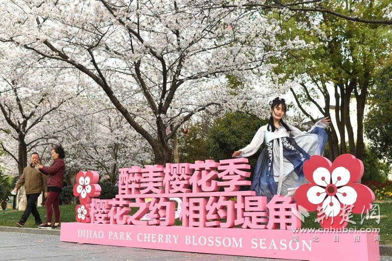 作為武漢“必打卡十大賞櫻點(diǎn)”之一的堤角公園內(nèi)共有櫻花樹(shù)1500余株22種,花期從3月一直到4月。通訊員供圖