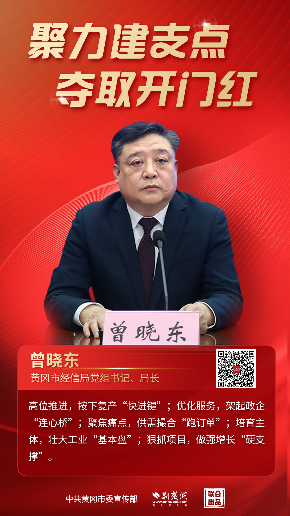 3月13日,黃岡市“聚力建支點(diǎn)·奪取開門紅”縣市長(局長)話經(jīng)濟(jì)首場新聞發(fā)布會(huì)舉行。會(huì)上,黃岡市政府、市發(fā)改委、市經(jīng)信局、市商務(wù)局、市文旅局等相關(guān)負(fù)責(zé)人介紹全市推動(dòng)一季度經(jīng)濟(jì)“開門紅”的具體舉措和初步成效,并回應(yīng)社會(huì)關(guān)切。