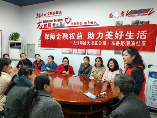 2025年3月11日上午,人保壽險黃石中支大冶支公司聯(lián)合大冶東岳路濱湖社區(qū)組織開展3.15專題宣傳活動。活動以“保障金融權(quán)益 助力美好生活”為口號,積極踐行以人民為中心的價值取向,將金融教育活動與為民辦實事深度結(jié)合,幫助社會公眾增強風險防范意識,切實保護金融消費者合法權(quán)益?;顒蝇F(xiàn)場就防非法集資、警惕金融詐騙、反洗錢宣傳及金融知識普及予以講座宣傳。