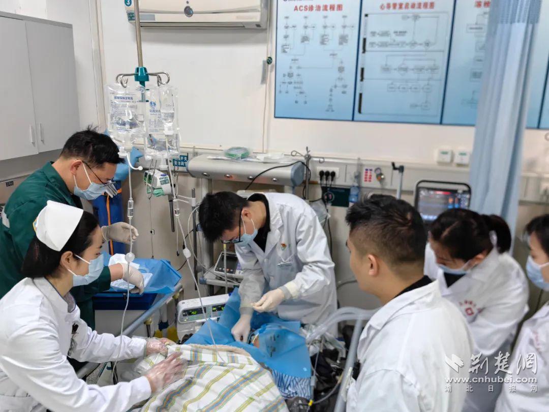 當轉(zhuǎn)運平車抵達急診樓電梯口時,患者突發(fā)呼吸心臟驟停、面色青紫。管床醫(yī)生孫宇飛身躍上轉(zhuǎn)運床實施持續(xù)胸外按壓,急診科主任張緣園率團隊接棒后展開教科書式搶救:氣管插管、深靜脈置管、腎上腺素推注......5分鐘后監(jiān)護儀重現(xiàn)規(guī)律心電波形,為后續(xù)治療贏得決定性窗口期。