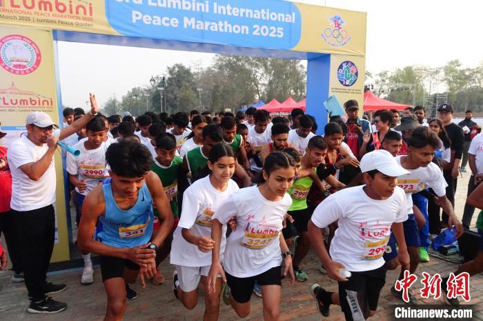 3月22日清晨,2025尼泊爾藍毗尼國際和平馬拉松在佛祖誕生地、聯(lián)合國教科文組織世界遺產(chǎn)尼泊爾藍毗尼開跑。 中新社記者 崔楠 攝