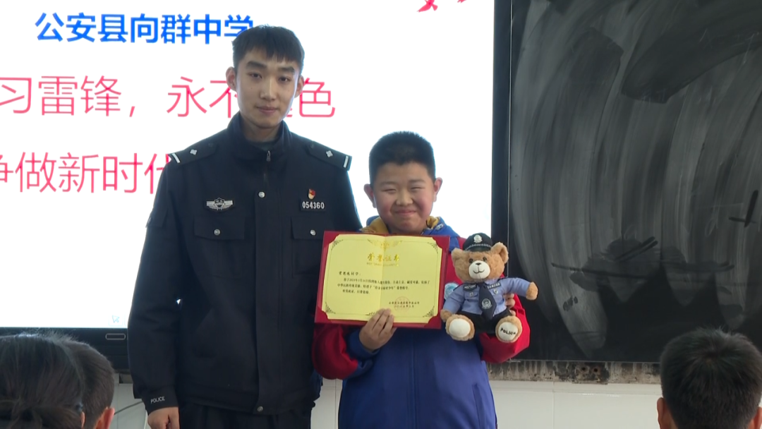 3月18日下午,公安縣向群中學(xué)和南平小學(xué)的宋思遠(yuǎn)、宋志遠(yuǎn)同學(xué)收到了來自公安縣警方贈(zèng)送的榮譽(yù)證書和警察小熊。
