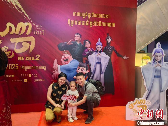 當(dāng)?shù)貢r(shí)間3月25日,一個(gè)在柬華人家庭到電影院觀看《哪吒2》時(shí)合影留念。中新社記者 楊強(qiáng) 攝