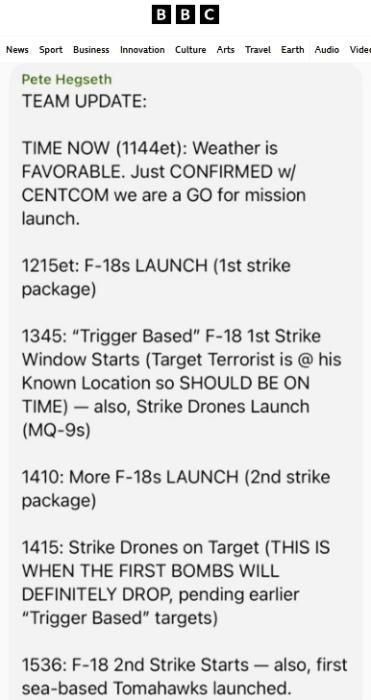 赫格塞思泄露作戰(zhàn)計劃。圖/英國廣播公司