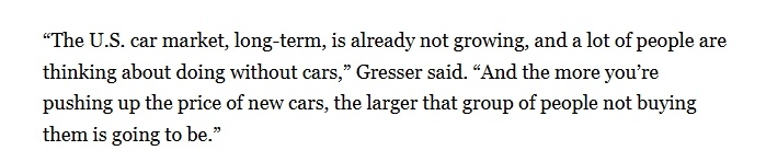 “從長期來看,美國汽車市場已不再增長,越是推高新車價格,不買車的人就會越多?!泵绹墩汀沸侣劸W(wǎng)報道截圖