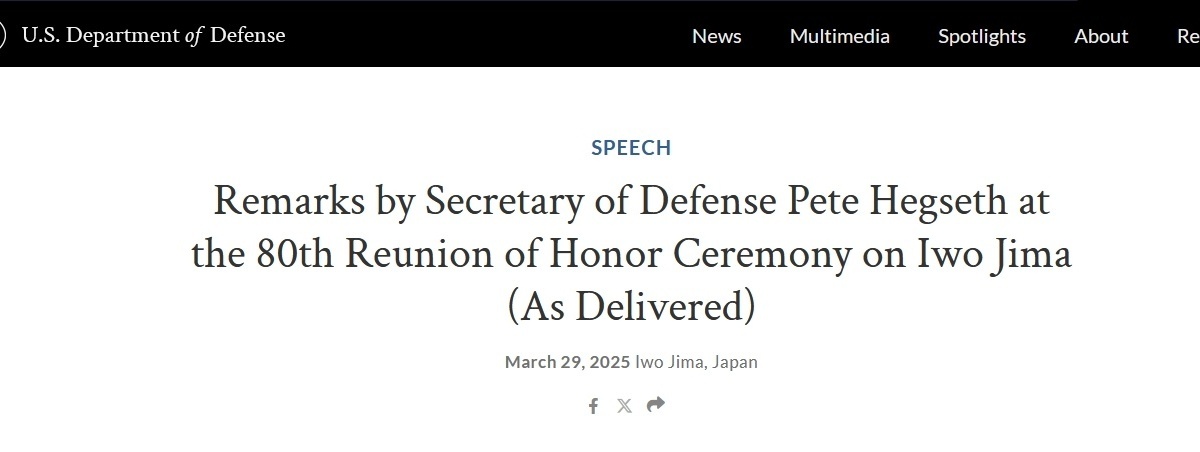 美國防部官網(wǎng)上發(fā)布的赫格塞思演講原文