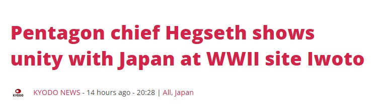 日媒報道:五角大樓負(fù)責(zé)人赫格塞思在二戰(zhàn)紀(jì)念儀式上展現(xiàn)了美日團(tuán)結(jié)