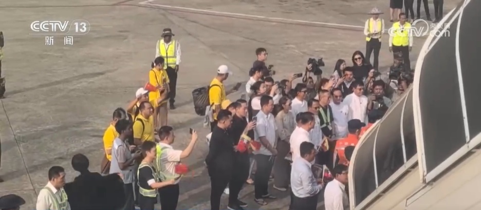飛機(jī)降落在仰光國(guó)際機(jī)場(chǎng),雖然還沒(méi)有下飛機(jī),但是緬甸方面的工作人員包括民眾已經(jīng)在飛機(jī)下迎接了。他們手中拿著緬甸和中國(guó)的國(guó)旗,搖動(dòng)的是一份濃濃的胞波情誼。