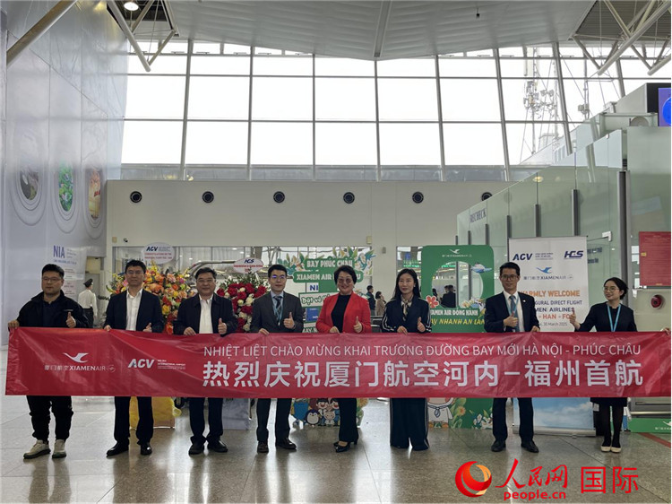 人民網(wǎng)河內(nèi)3月30日電 (記者楊曄)當(dāng)?shù)貢r(shí)間3月30日,廈門(mén)航空MF8697航班平穩(wěn)降落在越南河內(nèi)內(nèi)排國(guó)際機(jī)場(chǎng),標(biāo)志著廈航福州—河內(nèi)定期往返航線(xiàn)正式開(kāi)通。