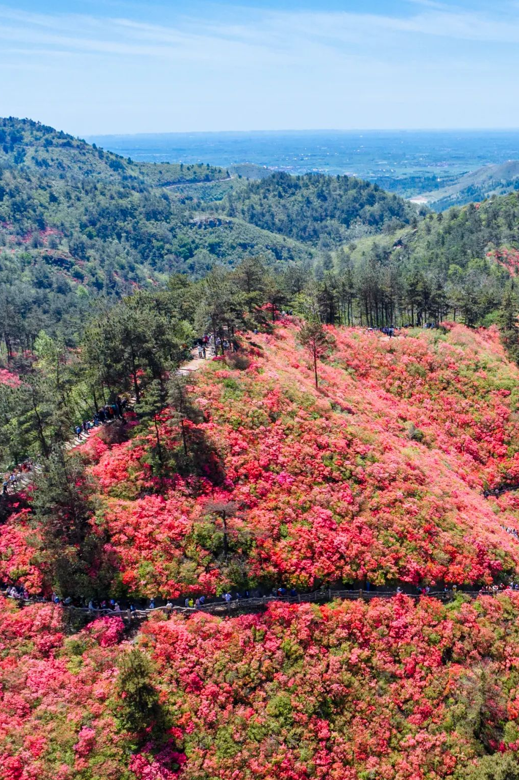 武漢市文化和旅游局,贊1165“人間仙境云霧山,層巒疊嶂映紅天”,木蘭云霧山的杜鵑花以映山紅為主,從3月中旬開始,萬畝野生紅杜鵑競相綻放,春風(fēng)吹過,此起彼伏,如霞似火,嫣然一片杜鵑花的海洋。