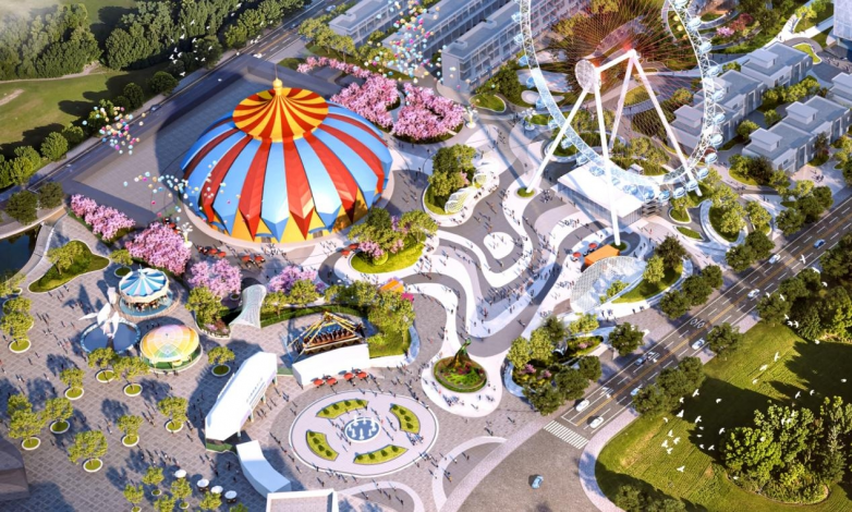 該項目占地面積超10萬平方,規(guī)劃了演藝娛樂、商餐文創(chuàng)、酒店度假三大功能板塊。其中,演藝娛樂區(qū)將是以摩天輪和大馬戲為核心的娛樂業(yè)態(tài);商餐文創(chuàng)區(qū)將是以城市節(jié)慶廣場和主題商業(yè)街為核心的休閑業(yè)態(tài);酒店度假區(qū)將是以主題酒店和水上主題樂園為核心的游樂運(yùn)動業(yè)態(tài)。整體將打造成為集主題游樂、都市休閑、沉浸互動體驗等多業(yè)態(tài)為一體的綜合休閑度假區(qū),也將成為都市中的“微度假”圣地。