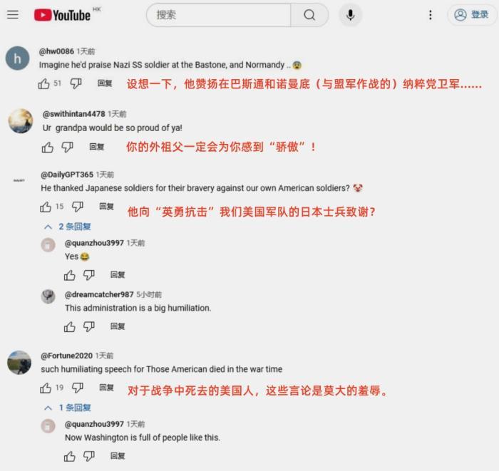 美國(guó)網(wǎng)友或氣憤地指責(zé)赫格塞斯的表態(tài)“是對(duì)戰(zhàn)爭(zhēng)中犧牲的美國(guó)士兵的羞辱”,或辛辣地嘲諷道,“設(shè)想一下,他也會(huì)贊揚(yáng)在諾曼底作戰(zhàn)的納粹黨衛(wèi)軍……”“現(xiàn)在我明白為什么美國(guó)要取消教育部了,因?yàn)槿魏稳藦拇硕寄茈S心所欲地編造歷史?!?/p>