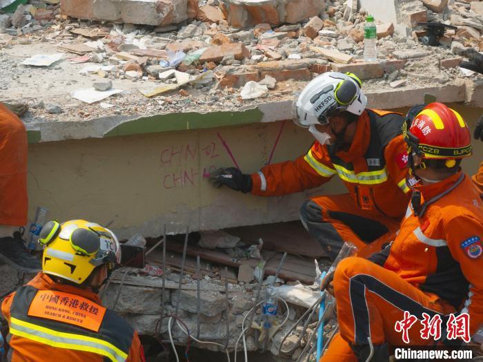 4月1日,中國救援隊聯(lián)合中國香港特區(qū)救援隊、深圳公益救援隊等協(xié)同行動,派出8批次67人,在曼德勒市內(nèi)29個場地開展搜救作業(yè),排查建筑32幢約3.4萬平方米。特別是針對市內(nèi)受災(zāi)嚴重的天空公寓,聚焦重點部位進行深層探察和切割、破拆,搜尋被困人員。