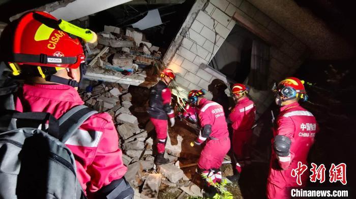 緬甸當?shù)貢r間4月1日,中國救援隊、中國香港特區(qū)救援隊等開展聯(lián)合救援行動。(中國應(yīng)急管理部供圖)