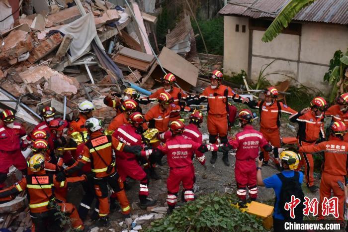 中國香港特區(qū)救援隊(duì)、深圳公益救援隊(duì)參與此次聯(lián)合救援。這是中國救援隊(duì)伍馳援緬甸后救出的第九名幸存者。