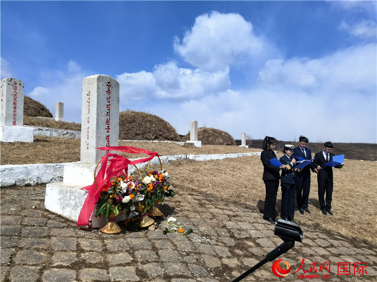 今年是中國人民志愿軍抗美援朝出國作戰(zhàn)75周年。3月30日,在清明節(jié)即將到來之際,中國駐朝鮮大使王亞軍率中國駐朝鮮使館、駐清津總領(lǐng)館全體館員、在朝中資機(jī)構(gòu)和媒體代表、旅朝華僑代表等近60人趕赴咸鏡南道長津郡,祭掃長津邑、新興里中國人民志愿軍烈士陵園,向長津郡下碣隅里楊根思烈士紀(jì)念碑敬獻(xiàn)花籃,祭奠緬懷在長津湖戰(zhàn)役中犧牲的中國人民志愿軍英烈。