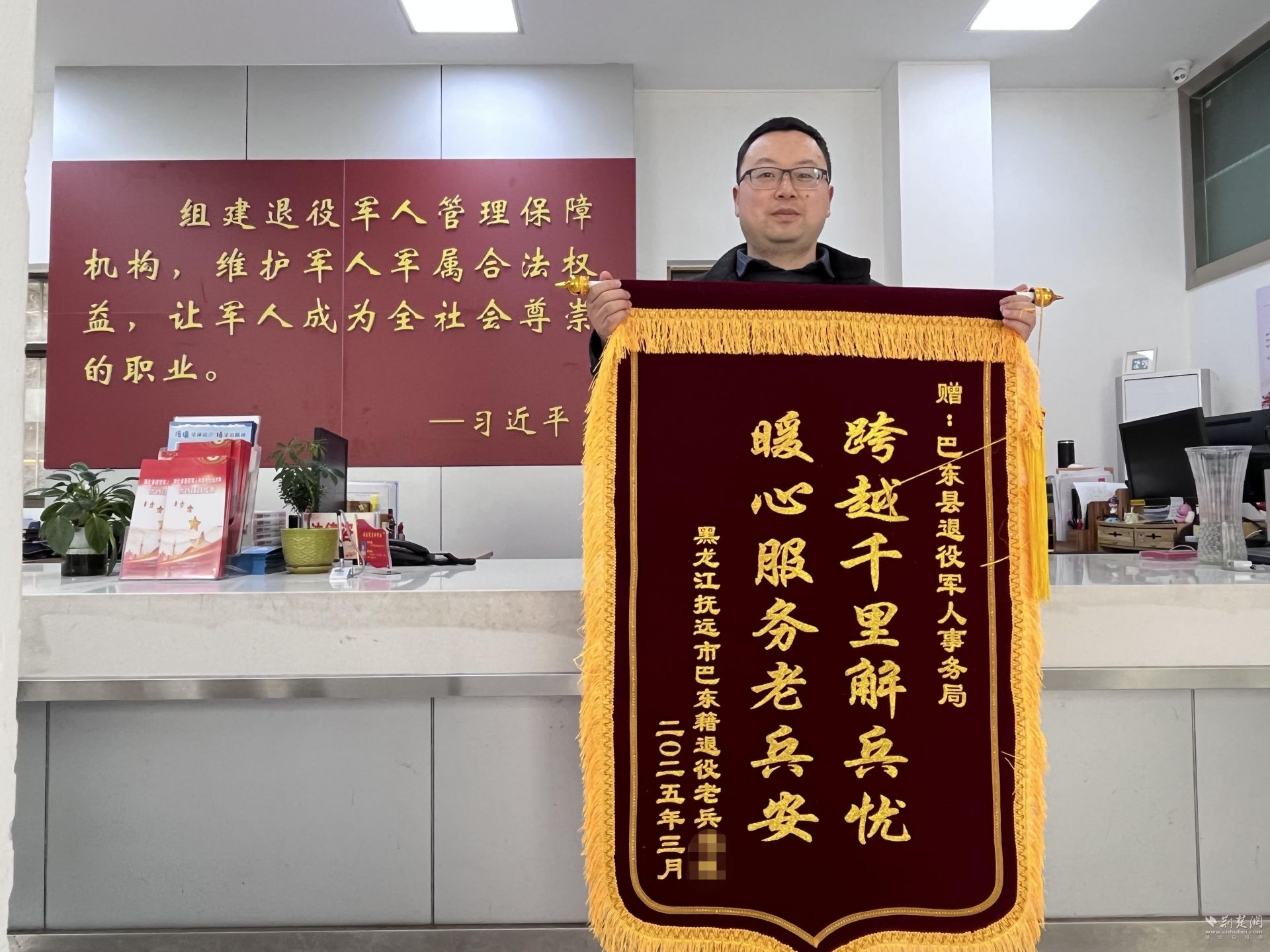 荊楚網(wǎng)(湖北日報網(wǎng))訊(通訊員 龍梅 、胡旦)4月3日,一面印有“跨越千里解兵憂 暖心服務(wù)老兵安”字樣的錦旗被寄到巴東縣退役軍人事務(wù)局,這面錦旗來自中國最東端黑龍江省撫遠(yuǎn)市的巴東籍退役軍人馮某,以感謝該局為其解決姓名登記不一致問題,助力順利完成退役身份認(rèn)定及工齡計(jì)算。