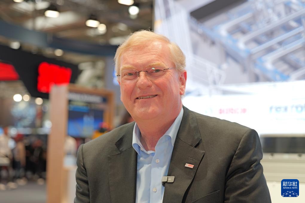 3月31日,德國博世集團(tuán)董事會主席斯特凡·哈通在德國漢諾威工業(yè)博覽會上接受新華社記者專訪。新華社記者 邰思聰 攝