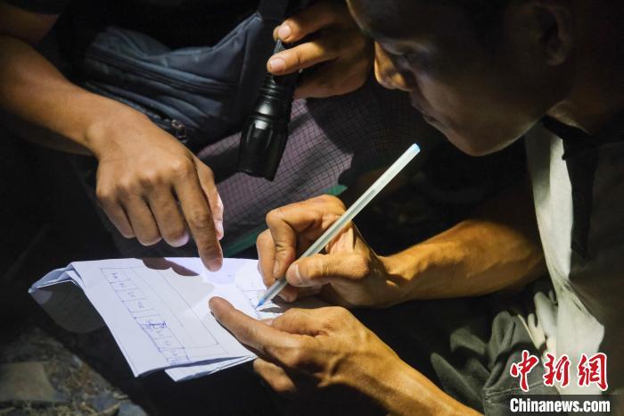 “既然探測(cè)到生命跡象,我們就要爭(zhēng)分奪秒,只要有任何機(jī)會(huì),我們都不會(huì)放棄?!甭?lián)合救援隊(duì)現(xiàn)場(chǎng)指揮官?gòu)?qiáng)調(diào)。救援隊(duì)員打著手電筒召開緊急會(huì)議,在本子上詳細(xì)繪制出現(xiàn)場(chǎng)坍塌圖示,通過翻譯聽取工作人員介紹倒塌酒店內(nèi)部結(jié)構(gòu),以確認(rèn)被困者具體位置。