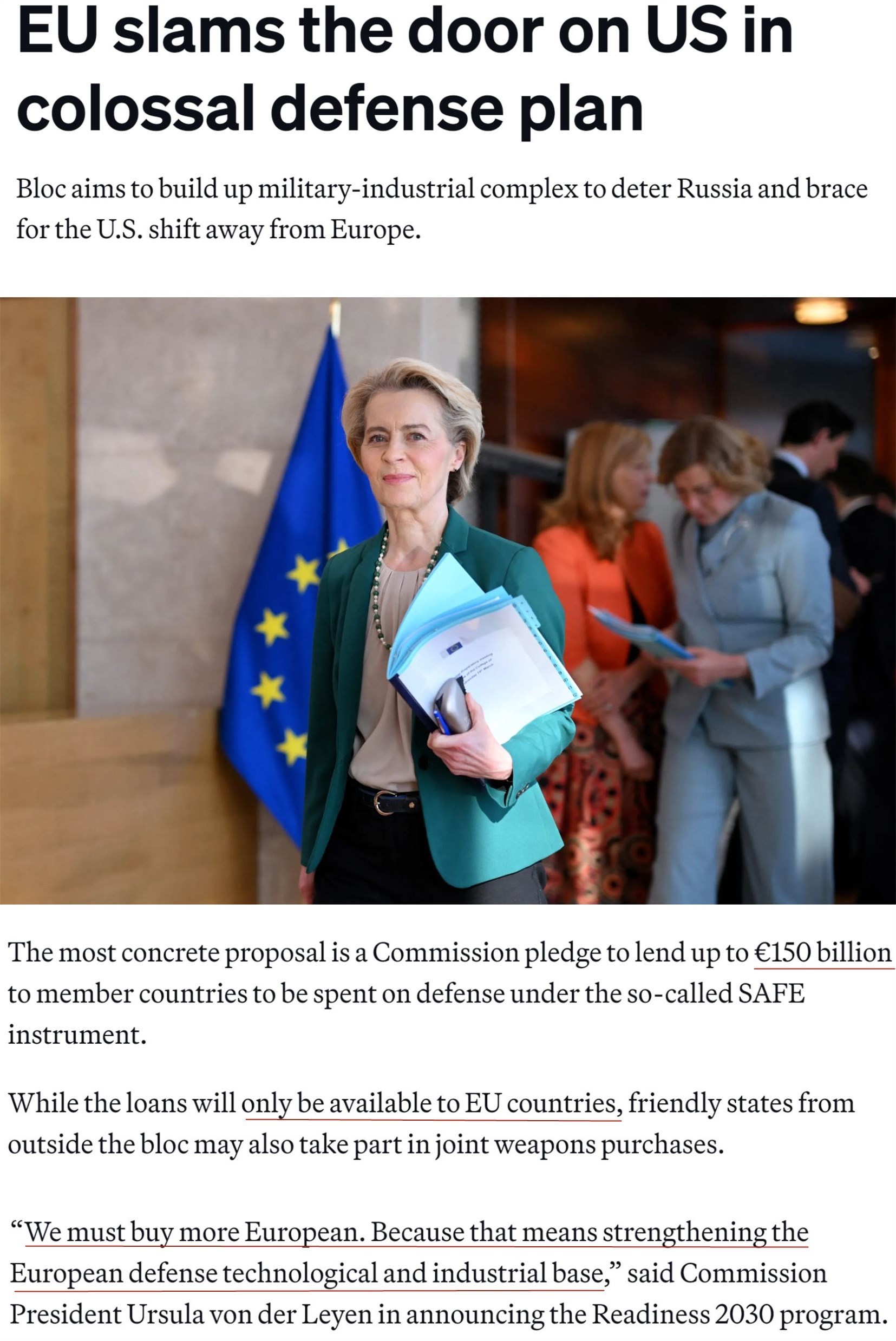 據(jù)報(bào)道,美國(guó)的軍火商被排除在1500億歐元貸款軍費(fèi)采購(gòu)計(jì)劃外。