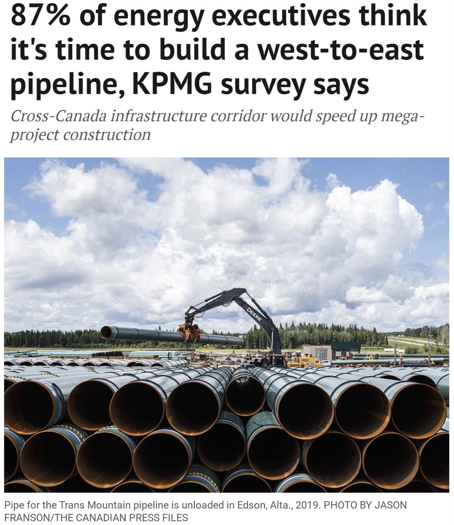 加拿大《金融郵報(bào)》日?qǐng)?bào)網(wǎng)站報(bào)道:調(diào)查發(fā)現(xiàn),87%的加拿大能源機(jī)構(gòu)高管認(rèn)為是時(shí)候建設(shè)東西方向的能源管線了。