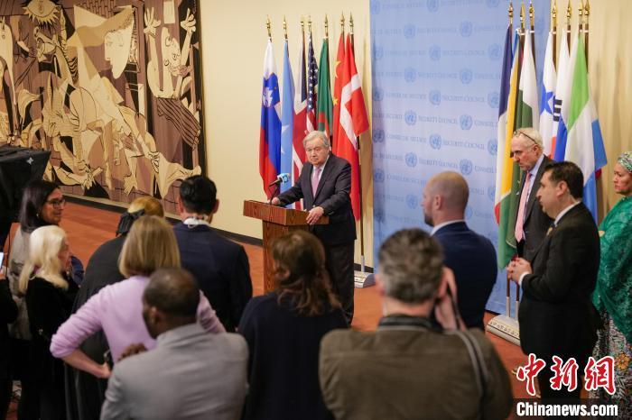 當?shù)貢r間4月8日,聯(lián)合國秘書長古特雷斯在紐約聯(lián)合國總部舉行記者會?!≈行律缬浾?王帆 攝