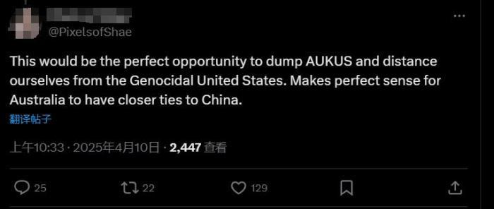 在澳大利亞廣播公司(ABC)相關(guān)新聞的評(píng)論區(qū),有澳大利亞網(wǎng)友留言稱:“這將是我們擺脫美國(guó)的絕佳機(jī)會(huì),澳大利亞與中國(guó)建立更緊密的關(guān)系也合情合理?!?/p>