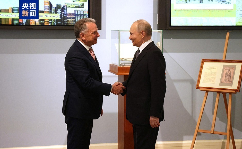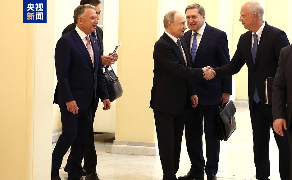 俄總統(tǒng)網(wǎng)站的圖片顯示,俄總統(tǒng)助理烏沙科夫和直接投資基金總裁德米特里耶夫在場(chǎng)。(總臺(tái)記者 程謨 王德祿)