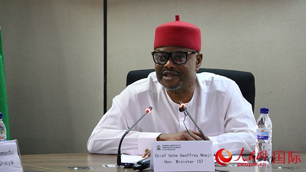 尼日利亞聯(lián)邦科技部納吉致辭。人民網(wǎng)記者 姜宣攝
