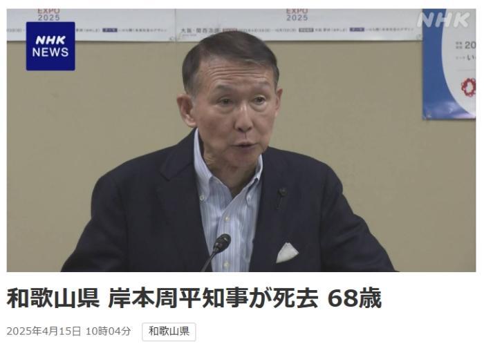 中新網(wǎng)4月15日電 據(jù)日本廣播協(xié)會(NHK)報道,當(dāng)?shù)貢r間15日,日本和歌山縣知事岸本周平去世。一天前,他在位于和歌山市內(nèi)的知事官邸被發(fā)現(xiàn)倒在地上,隨后被送往醫(yī)院。