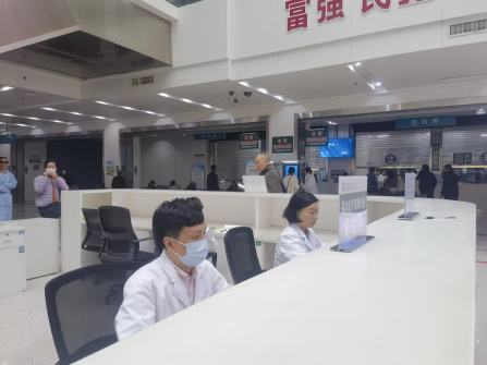 門(mén)診一站式服務(wù)中心將分散在不同區(qū)域的服務(wù)集中到同一空間,實(shí)現(xiàn)“一窗受理、一站服務(wù)”?;颊咴谶@里可以輕松辦理導(dǎo)醫(yī)咨詢(xún)、預(yù)約掛號(hào)、自助繳費(fèi)、及門(mén)診病歷發(fā)票打印等多項(xiàng)業(yè)務(wù),還可享受便民及志愿服務(wù)、特殊人群及助老服務(wù)等。