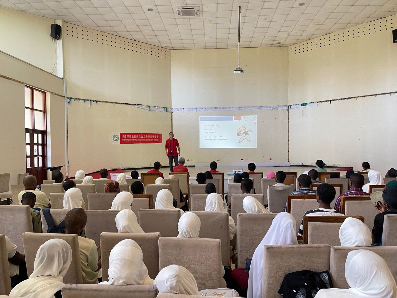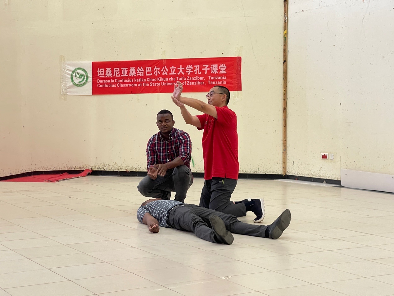 人民網(wǎng)約翰內(nèi)斯堡4月18日電 (記者鄒松)在4月20日“國際中文日”來臨之際,第34期中國(江蘇)援桑給巴爾醫(yī)療隊受邀參加桑給巴爾公立大學(xué)孔子學(xué)院舉辦的“國際中文日”活動,為學(xué)院師生帶來一堂內(nèi)容豐富、實用性強的急救知識培訓(xùn)課程?,F(xiàn)場氣氛熱烈,近百名學(xué)生積極參與,反響良好。