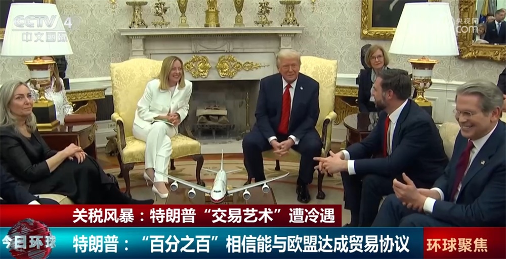 當天,特朗普在白宮與到訪的意大利總理梅洛尼進行會晤,他表示,“百分之百”有信心在90天的“對等關稅”暫停期結束前與歐盟達成貿易協(xié)議。