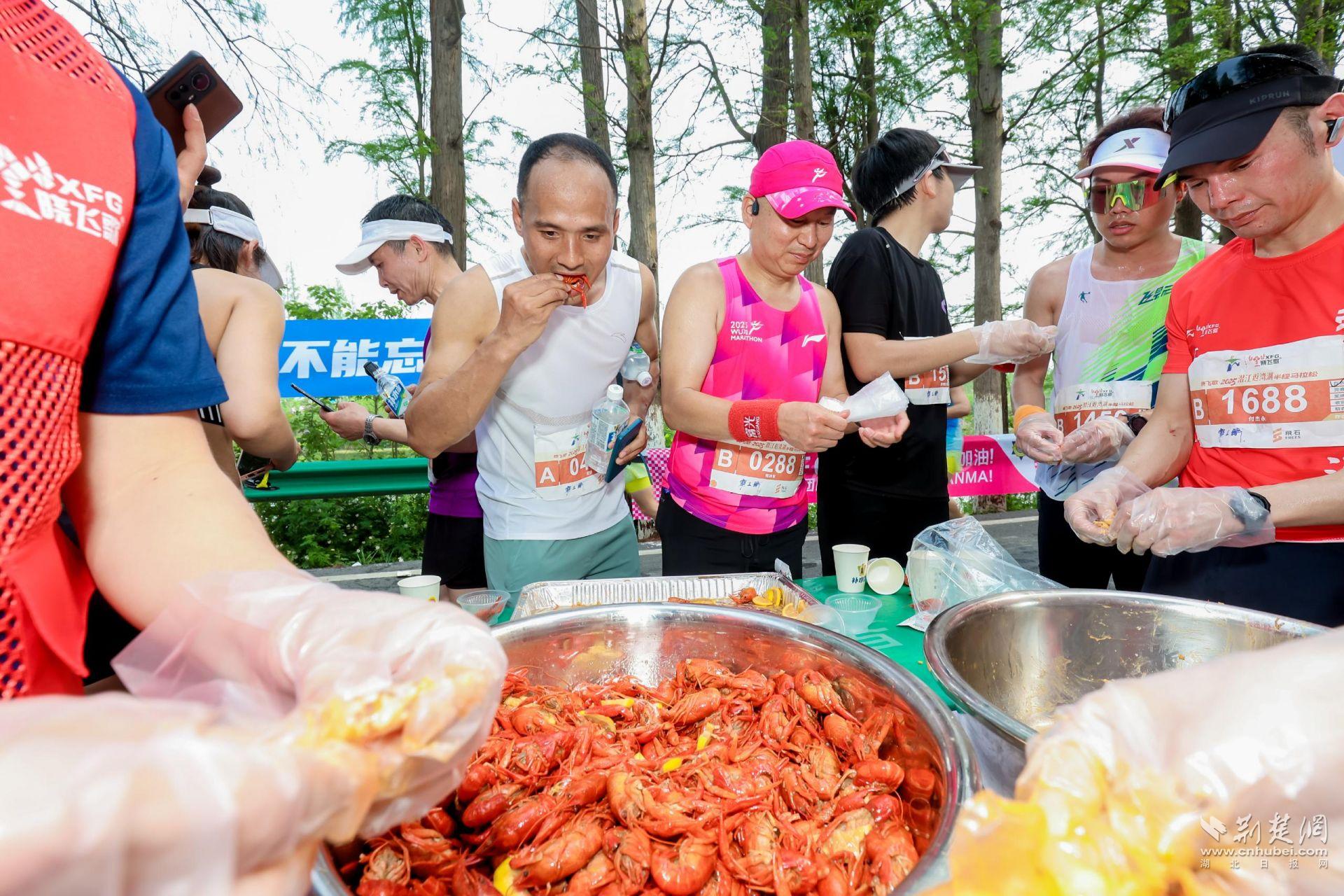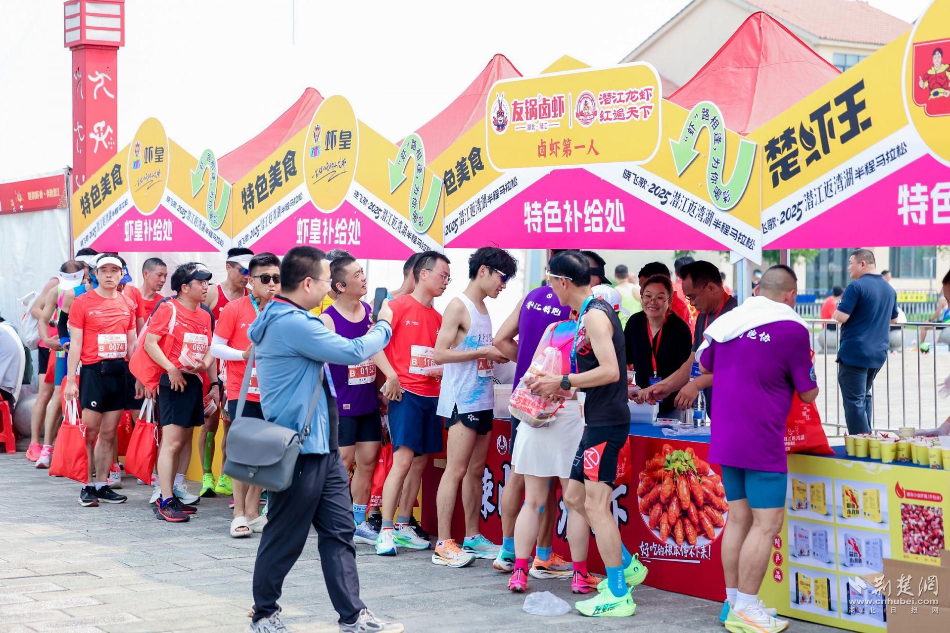 本屆潛江返灣湖半程馬拉松精彩不斷,亮點(diǎn)紛呈。機(jī)器人現(xiàn)場助威,現(xiàn)代科技感十足。楚風(fēng)人物服裝裝扮,一眼回眸千年。細(xì)腰舞和民樂表演,潛江文化精彩演繹?,F(xiàn)場2000多斤小龍蝦補(bǔ)給,更是讓賽事充滿了獨(dú)特的“潛江味道”。