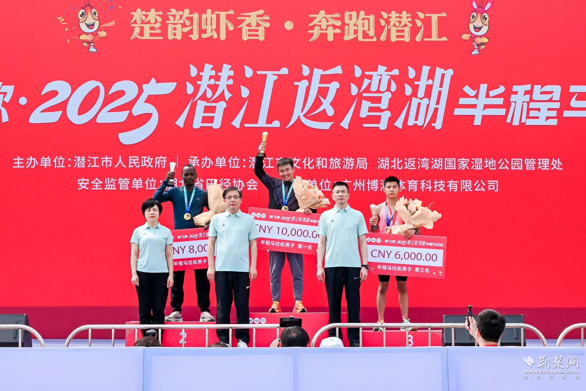 經(jīng)過激烈角逐,中國選手巴合塔爾·吾拉孜艾力以01:08:04的成績獲得半程馬拉松項(xiàng)目男子組冠軍,肯尼亞選手KIPNGETICH ABIUD、中國選手姚其友分別獲得亞軍、季軍。