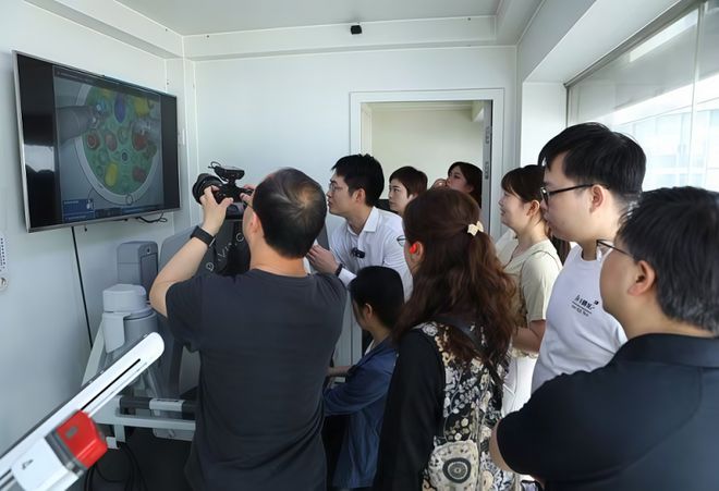 活動現(xiàn)場,由泌尿外科、小兒外科、甲乳外科、肝膽胰外科、婦科、胃腸外科、胸心外科、腫瘤科等多個學(xué)科領(lǐng)域?qū)<易?zhèn)的義診區(qū)域排起了長隊;達芬奇機器人試駕吸引了眾多醫(yī)務(wù)人員及市民的駐足,近距離感受坐在操作臺前化身“三頭六臂”的神奇……“第一次親眼見到手術(shù)機器人,還可以上手操作,科技感拉滿了?!笔忻駨埮勘硎?。