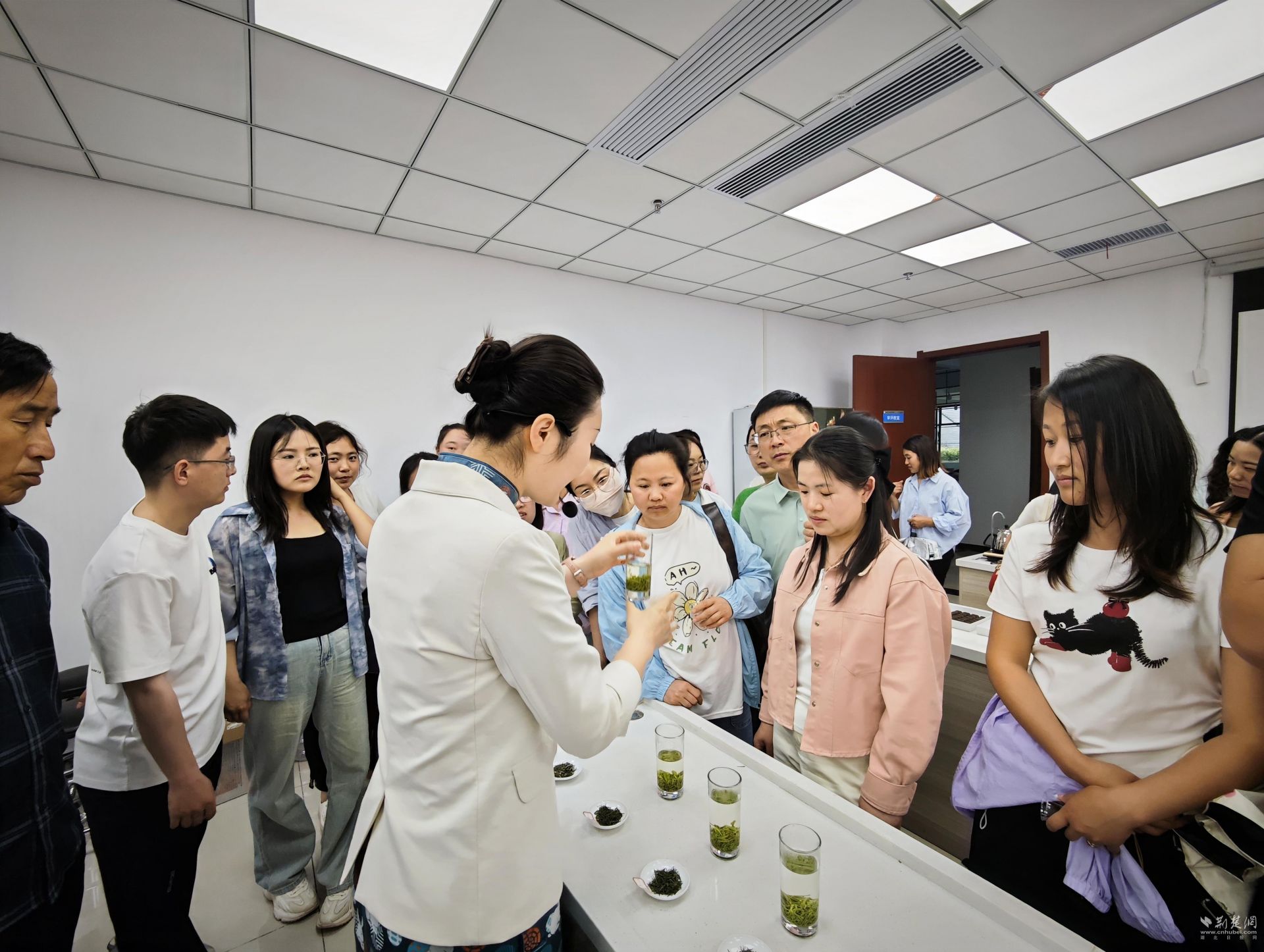 在恩施州農(nóng)業(yè)科學院硒茶學院,湖北省勞動模范、湖北省三八紅旗手標兵、院長何潔現(xiàn)場講解了恩施硒茶產(chǎn)業(yè)的市場前景和發(fā)展體系等,硒茶學院茶藝師還給代表們培訓了茶葉沖泡、品鑒等特色茶藝。代表們就大支坪鎮(zhèn)“尚家村茶”的品種改良、品牌運營與專家們展開深入交流。