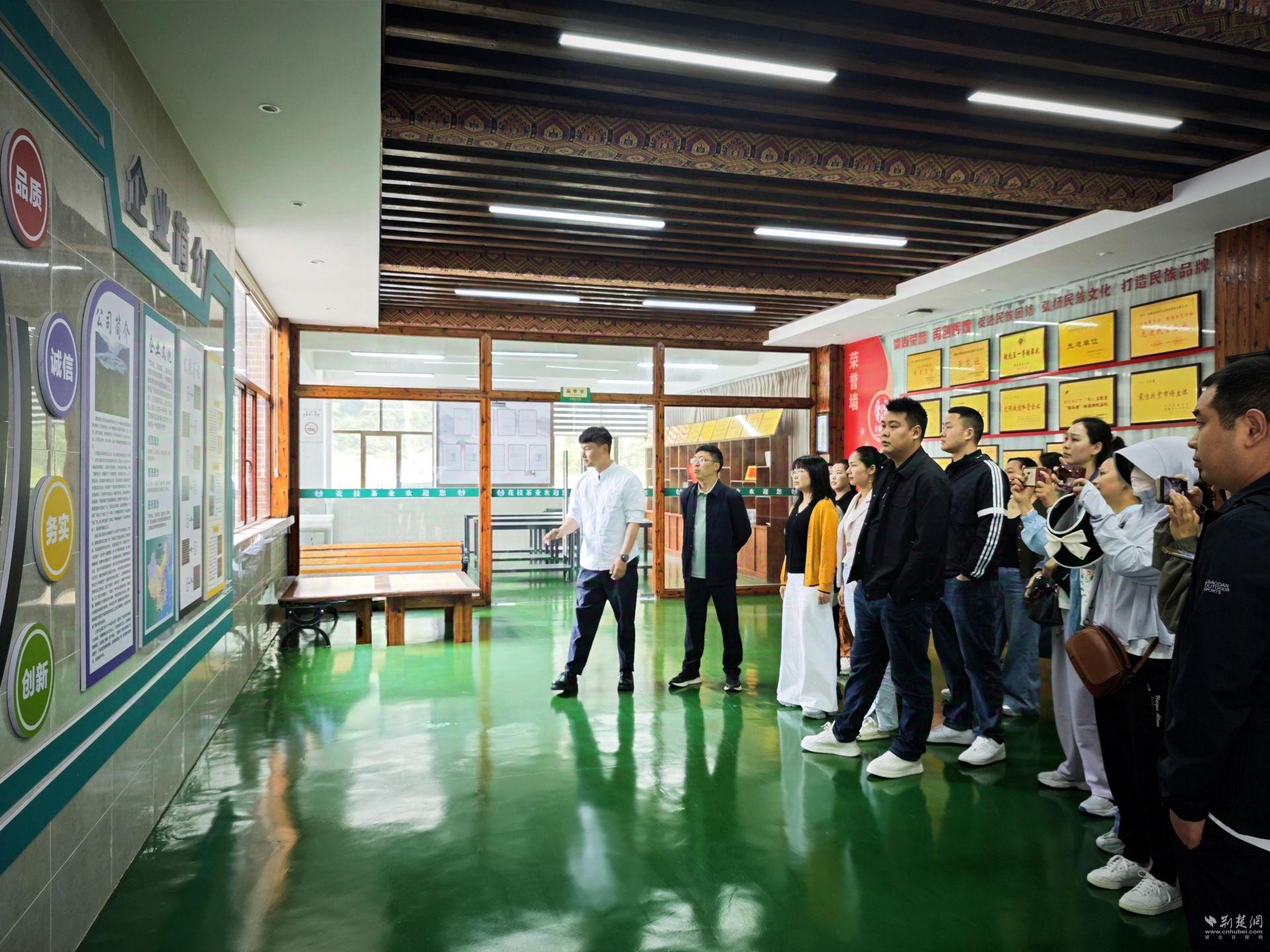 代表們首站走進了恩施花枝山生態(tài)農(nóng)業(yè)股份有限公司,實地參觀茶葉種植基地、加工車間、茶產(chǎn)品展示區(qū)和基地民宿,詳細了解生態(tài)茶業(yè)品種選育、標準化生產(chǎn)及產(chǎn)品深加工等。代表們還圍繞農(nóng)旅融合、產(chǎn)旅融合發(fā)展,學習了花枝山“茶園觀光+民宿體驗+專業(yè)合作社”的運營模式。