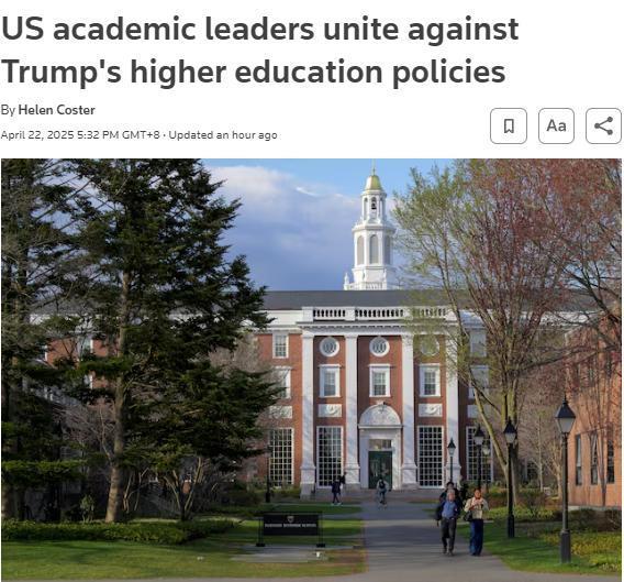 美媒指出,此舉系哈佛大學指責政府“威脅其辦學自主權(quán)”后,美國學術(shù)界發(fā)起的集體抗議行動。