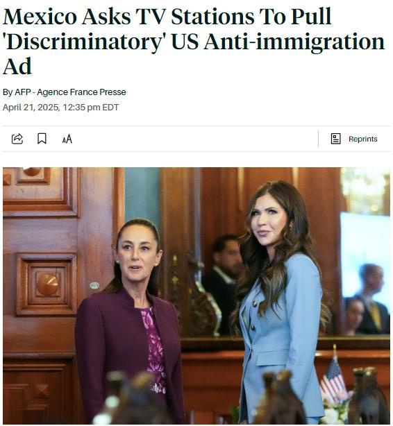 據(jù)報(bào)道,該廣告是美國(guó)國(guó)土安全部長(zhǎng)克麗絲蒂·諾姆于2月宣布的一項(xiàng)耗資數(shù)百萬(wàn)美元的國(guó)際宣傳活動(dòng)的一部分,該活動(dòng)將在多個(gè)國(guó)家通過(guò)廣播、電視和數(shù)字形式進(jìn)行。