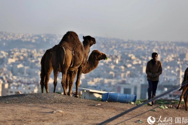 約旦首都阿曼街頭的駱駝。人民網(wǎng) 納達(dá)爾·達(dá)烏德攝