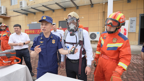 在互動(dòng)環(huán)節(jié)中,大家穿上了厚重的消防服,瞬間化身為一名勇敢的“藍(lán)朋友”,親身體驗(yàn)了一把消防員們的日常訓(xùn)練,并登上救援云梯車,體驗(yàn)15米高空救援情境,深刻體會(huì)到消防員在執(zhí)行任務(wù)時(shí)所面臨的艱辛與挑戰(zhàn)。