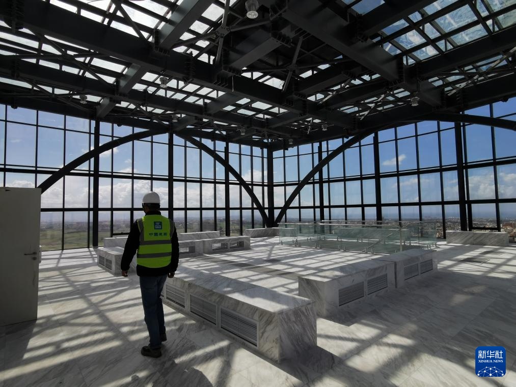這是3月24日在阿爾及利亞首都阿爾及爾拍攝的住房、城市規(guī)劃和城市部的新辦公大樓樓頂平臺。新華社記者 徐永春 攝