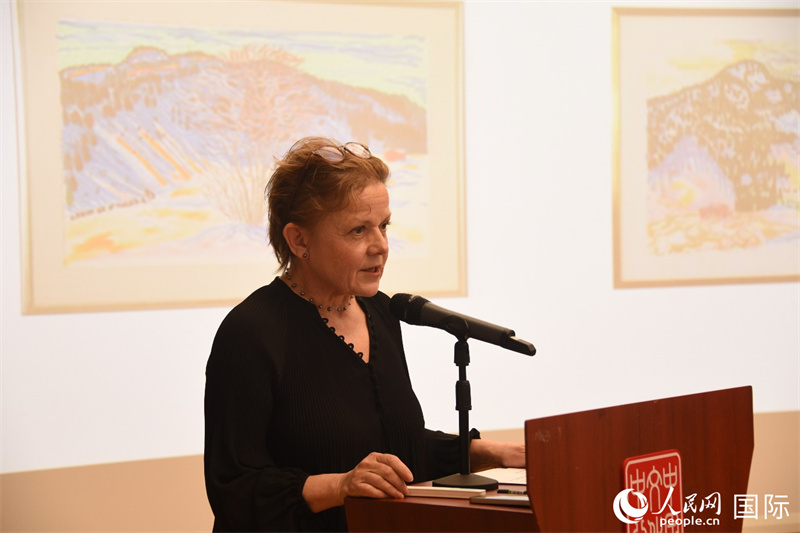 瑞典著名畫家比麗塔·穆?tīng)栕魉囆g(shù)講座。人民網(wǎng)記者 殷淼攝